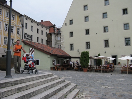 В этот день мы покидали Мюнхен и направлялись в сторону Чехии. Путь наш лежал через немецкий город Регенсбург – один из старейших городом Германии, который известен своим каменным мостом (ставший прототипом аналогичных построек по всей Европе, таких как Карлов мост в Праге, мост через Темзу в Лондоне и т.д.) и регенсбурским собором. После многолюдных и шумных Мюнхена и Вены, этот город показался нам тихим, уютным и спокойным. Оставив машину рядом с центром города, мы с удовольствием прогулялись по его узким улочкам, посетили собор, перешли через Дунай по каменному мосту, зашли перекусить в старейшую в Германии сосисочную (которой уже почти 900 лет). Регенсбург славится также своими кофейнями, которые впервые появились в Германии именно в этом городе и действительно, кофе здесь просто потрясающий (не чем не хуже венского, а на мой вкус даже лучше). А еще здесь есть отлично сохранившиеся римские ворота Порта Преториа, которые являются древнейшим сооружением на территории Германии (179 г.). В общем Регенсбург, это тот город, в котором можно отдохнуть и есть что посмотреть.